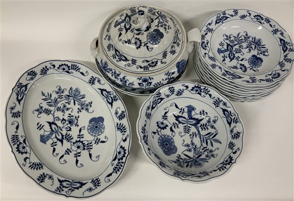 Manifattura Blue Danube, parte di servizio di piatti in porcellana bianca e blu