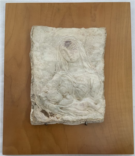 Lotto composto da due bassorilievi in marmo raffiguranti la Madonna che allatta