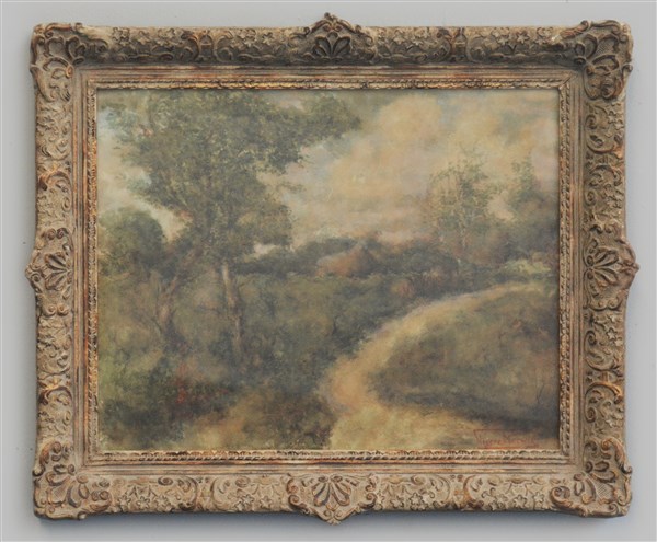 Pierre Neewis "Paesaggio boschivo" tecnica mista su cartoncino (cm 44x58) Firma