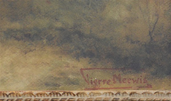 Pierre Neewis "Paesaggio boschivo" tecnica mista su cartoncino (cm 44x58) Firmato in basso a destra. In cornice