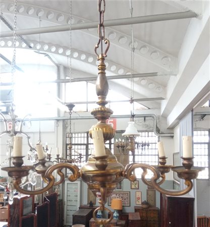 Lotto composto da un lampadario a sei fiamme ed uno ad una fiamma in metallo do