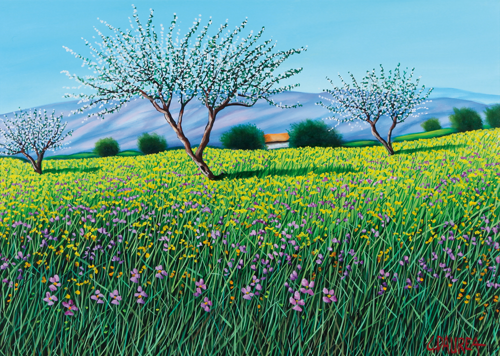 GIOVANNI DAUREA Caltanissetta 05/10/1955 Campo fiorito olio su tela cm. 50x70, firma in basso a destra, firma e archivio dell'artista al retro, dichiarazione d'autenticità dell'artista su foto.