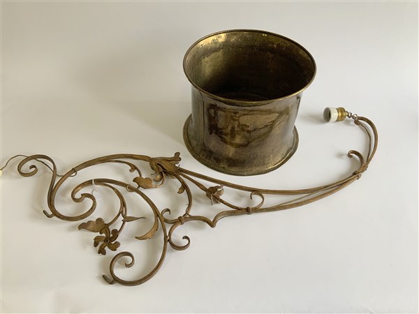 Lotto vario composto da tre cachepot, una lampada da tavolo in ceramica e una applique in ferro battuto (difetti)