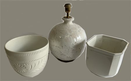 Lotto vario composto da tre cachepot, una lampada da tavolo in ceramica e una a