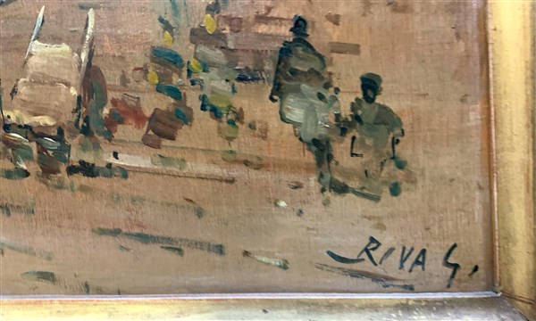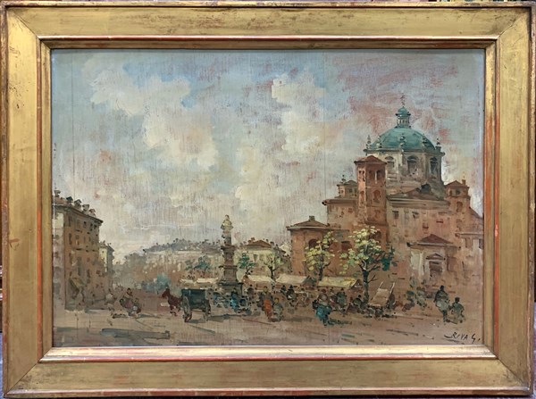 Giovanni Riva "Milano: mercato in Piazza Vetra" olio su compensato (cm 50x70) Fi
