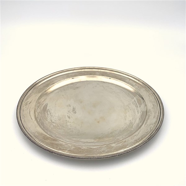 Piatto tondo in argento con bordo dentellato (d. cm 35) argentiere Miracoli, ti