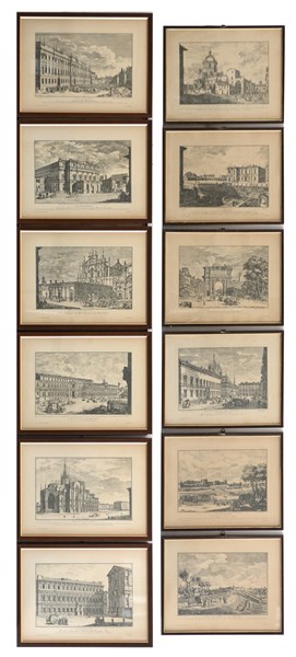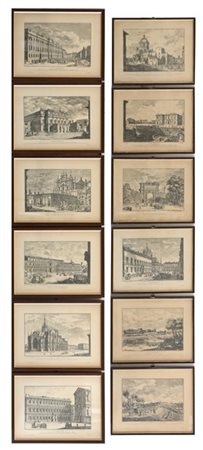 Lotto di dodici riproduzioni raffiguranti scorci di Milano con Monumenti e Pala
