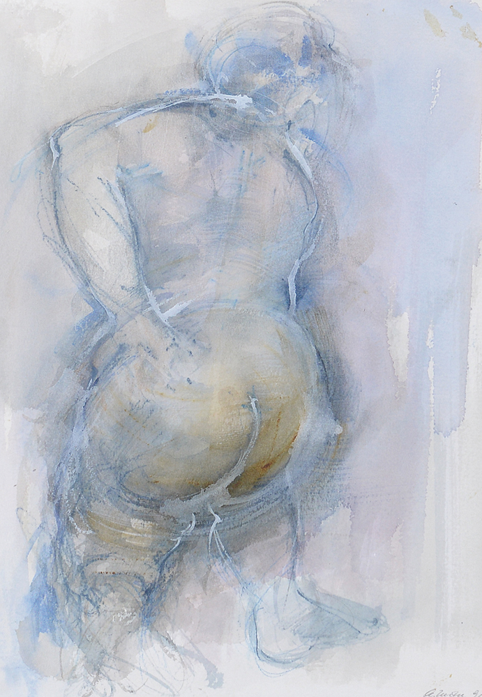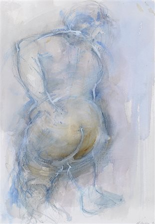 GIUSEPPE AJMONE Carpignano Sesia 17/02/1923 - Romagnano Sesia 07/04/2005 Nudo, 1991 tecnica mista su carta cm. 36x25, firma e anno in basso a destra.