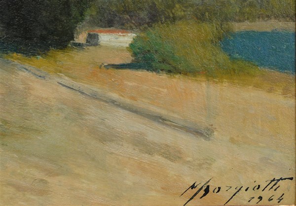 Mario Borgiotti "Cipressi" 1964, olio su tavola (cm 38x26) Firmato e datato in b
