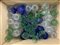 Cartone contenente numerosi bicchieri in vetro trasparente incolore, verde e bl