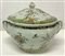 Zuppiera biansata con coperchio in ceramica con decoro in policromia a "giardin
