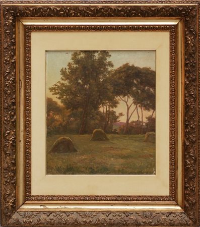 Werner A. Parsberg (Secolo XIX - XX) "Covoni" olio su tela (cm 47x42) Firmato in basso a destra. In cornice