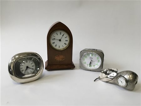 Lotto composto da quattro orologi da tavolo di diverse forme, misure e material