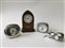 Lotto composto da quattro orologi da tavolo di diverse forme, misure e materiali (difetti)