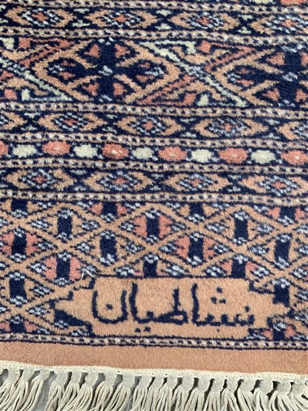 Tappeto Boukhara, Pakistan, secolo XX. Cartiglio con iscrizione islamica (cm 15