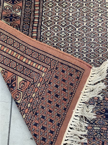 Tappeto Boukhara, Pakistan, secolo XX. Cartiglio con iscrizione islamica (cm 150x96) (Lievi difetti)