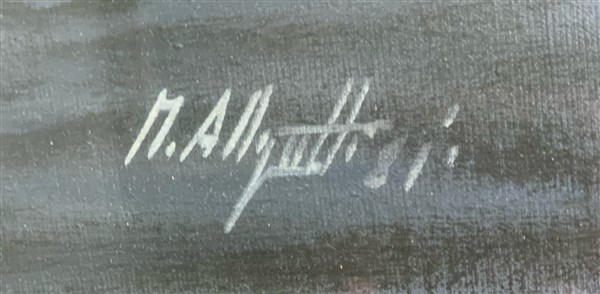 Mario Allegretti "Veliero al tramonto" olio su tela (cm 60x70) Firmato in basso