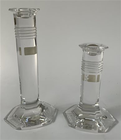 Lotto composto da due candelieri in cristallo a fusto sfaccettato marcati Chris