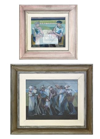 Lotto composto da due dipinti a tecnica mista, uno su masonite e uno su carta,