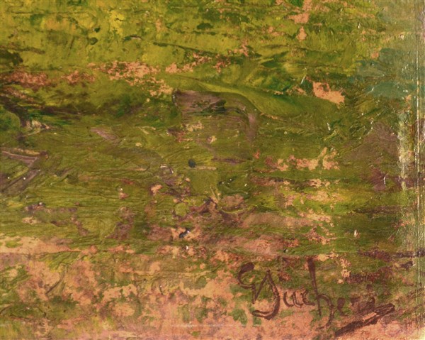 "Paesaggio" olio su cartone pressato (cm 32x26) Firmato in basso a destra. In cornice