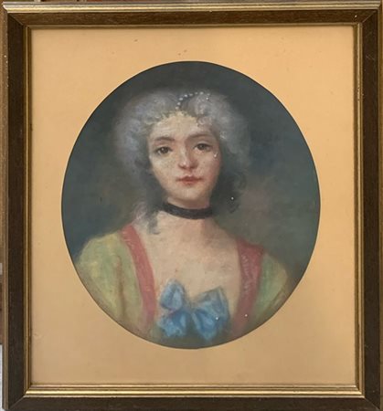 Ignoto "Ritratto di dama" pastelli colorati su cartoncino (cm 40x30) In cornice