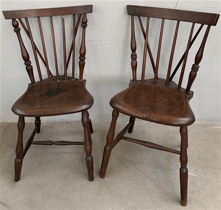 Coppia di sedie in legno con montanti torniti e schienali a giorno (difetti)