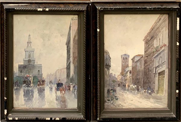 "Vienna" e "Toledo" Coppia di acquerelli su carta (cm 48x32) Firmati e locati in basso a sinistra. In cornici