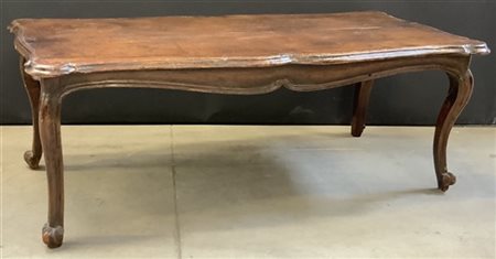 Antico tavolino da salotto in legno intagliato con gambe e piano mossi (cm 109x