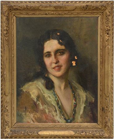 Riccardo Galli "Ritratto femminile" olio su compensato (cm 50x40) Firmato in bas