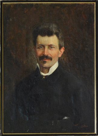 "Ritratto di Agostino Fraschini" olio su tela (cm 75x55) Firmato in basso a destra. Al retro: iscrizione. In cornice (difetti)