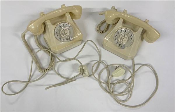 Coppia di telefoni con numerazione a disco in materiale plastico bianco (lievi