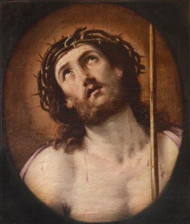Ignoto del XIX Secolo copia da Guido Reni (Bologna 1575 - 1642) "Cristo coronato di spine" olio su tela (cm 62x53) (difetti e restauri)