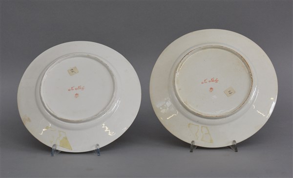 Manifattura di Dresda secolo XIX, coppia di piatti in porcellana decorata nel c