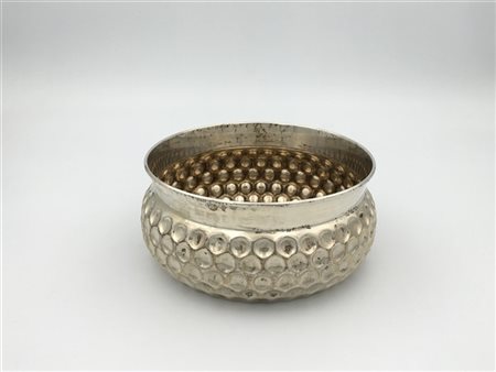 Centrotavola in argento con corpo bugnato. Titolo 800. Argentiere Tozzi Bruno (d. cm 20) (g 500) (difetti)