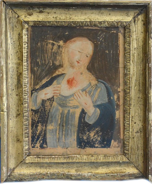 Ignoto "Madonna addolorata" dipinto su vetro (cm 30x22). In cornice(difetti e