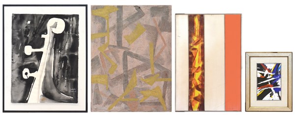 Lotto composto da quattro dipinti astratti, di tecniche, misure, autori diversi