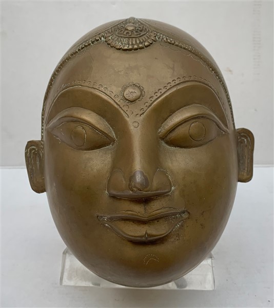 Manifattura del Sud-Est asiatico. "Testa di Buddha" scultura in metallo a guisa