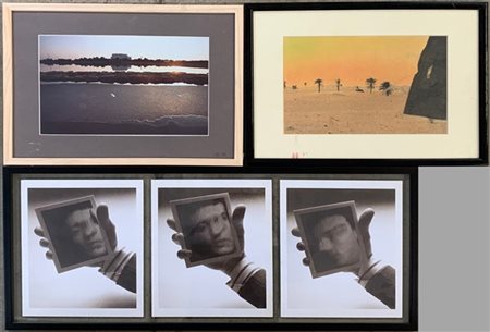 Lotto composto da cinque fotografie contenute in tre cornici, comprendente trittico di Polaroid di grande formato. Artisti, misure e soggetti diversi
