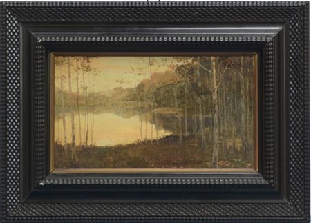 Ignoto "Paesaggio lacustre" olio su cartone (cm 24x40) In cornice