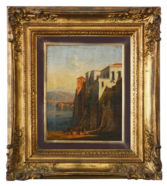 Ignoto del XIX Secolo "Costiera Amalfitana" olio su tela (cm 33x27) Reca iscrizione G.Gigante in basso a destra. In cornice