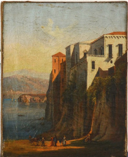 Ignoto del XIX Secolo "Costiera Amalfitana" olio su tela (cm 33x27) Reca iscriz