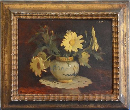 "Vaso di fiori" olio su compensato (cm 24x30) Firmato in basso a sinistra. In cornice