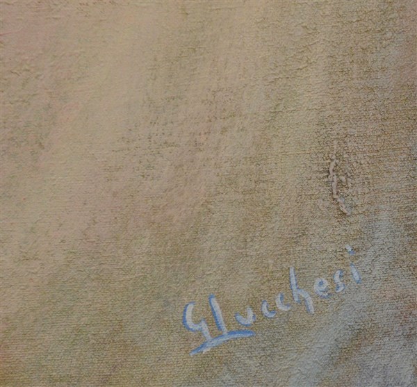 G. Lucchesi "Maternità" olio su tela (cm 90x73) Firmato in basso a destra. Al retro: firmato e titolato. In cornice (difetti)
