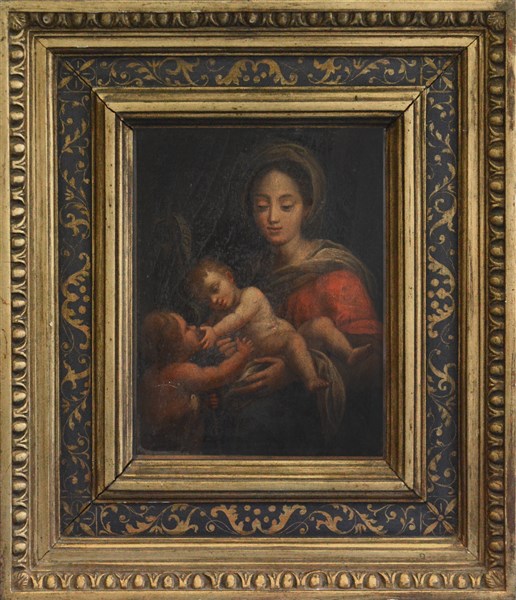 Ignoto "Madonna con Bambino e San Giovannino" antico dipinto ad olio su tavola