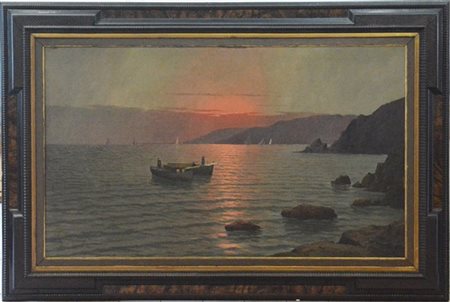 Rossi "Marina al tramonto" olio su tela (cm 98x168) Firmato in basso a destra. In cornice