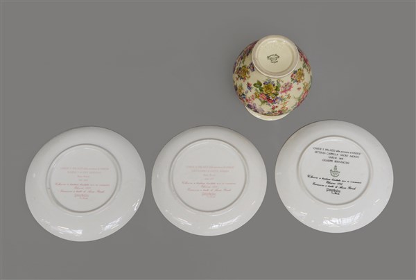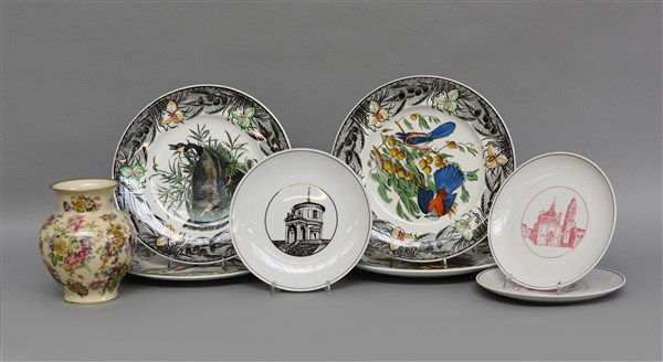 Manifatture diverse del secolo XX, lotto composto da sette piatti ed un vaso in