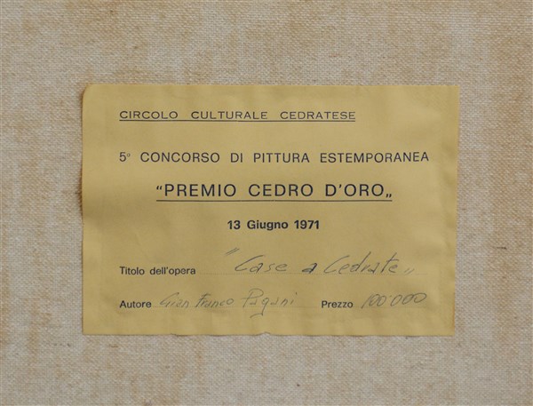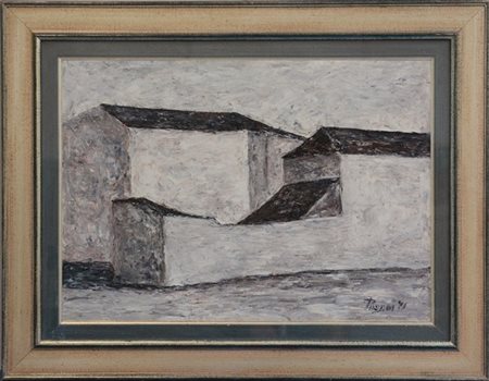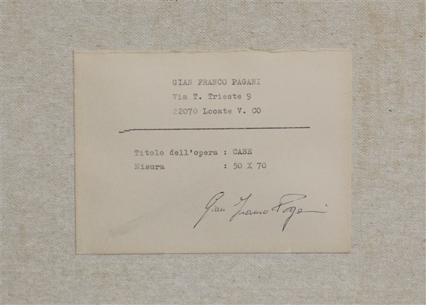 Pagani, "Case", olio su tela (cm 50x70) firmato e datato '71 in basso a destra (etichette a retro)