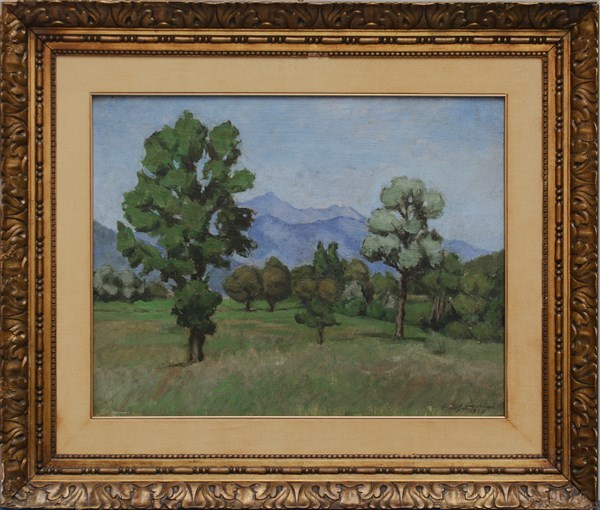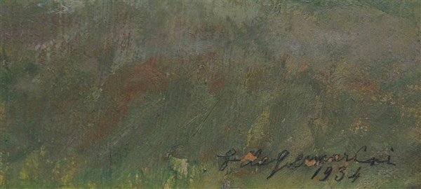 Firma indecifrata "Paesaggio" olio su cartone (cm 48x62) Firmato e datato 1934