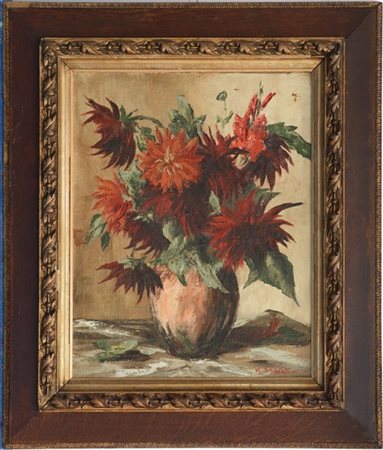 K. Martin "Natura morta con fiori" olio su cartone telato (cm 48x38) Firmato in