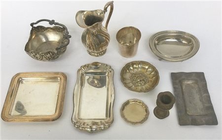 Lotto composto da alcuni oggetti in metallo argentato (difetti)